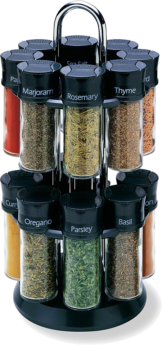 Go to next slide - Best Selling. Olde Thompsons two-tier black spice rack carousel is a proven long-standing favorite design featuring 16 favorite herbs and spices in clean glass jars.