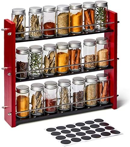 Ezoware Wood Spice Rack With 21 Empty Jars And Labels 3 Tier Freestanding Organizer Shelf Display Stand With Rails For Countertop Cabinet Kitchen Pantry Red And Black Kitchen Dining Amazon Com Au