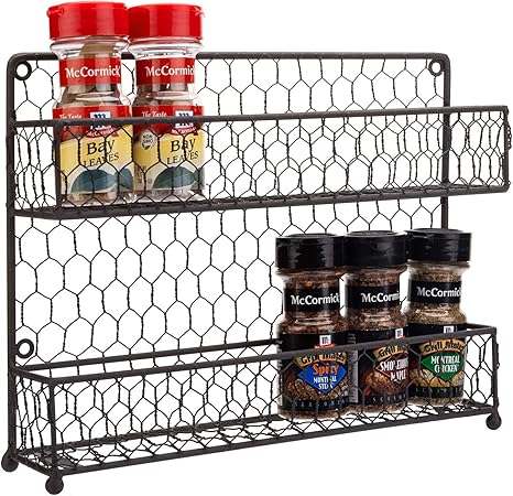 Amazon Com Mygift Rustic Brown Dual Tier Wire Spice Rack Jars Storage Organizer Kitchen Countertop Or Wall Mount Kitchen Dining