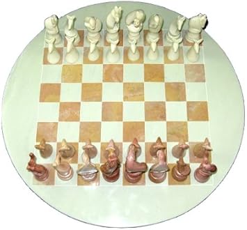 African Soapstone Chess Set Animal Pieces Natural Stone Finish Round 30cm Fair Trade Amazon Co Uk Toys Games