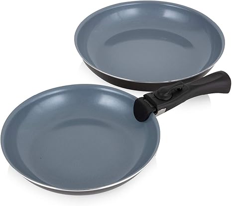 Amazon Com Tower T800203 Freedom 3 Piece Cookware Set With Ceramic Coating Stackable Design And Detachable Handle Graphite Aluminium Kitchen Dining