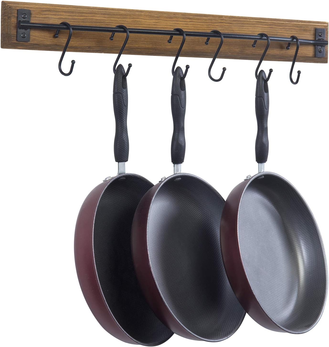 Mygift 6 Removable S Hook Rustic Brown Wood Wall Mounted Pot Pan Storage Rack Organizer Cooking Utensil Display Holder Amazon Co Uk Diy Tools