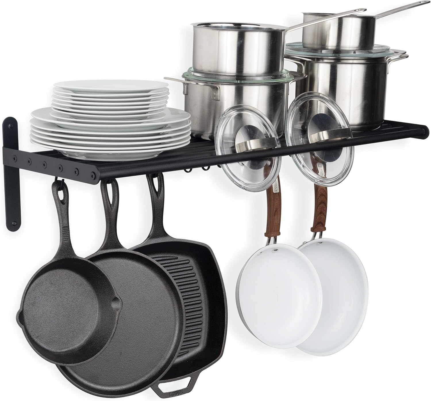 Ships free orders over 39. A variety of styles are available including wall-mounted bookshelf pot racks that include a shelf for storing additional pots and pans lids cookbooks or other kitchen items corner pot racks that make use of valuable corner space in kitchens where space is at. The result is an impressive collection of rustic pot racks and mounted pot hooks that will fit into any modern-style kitchen as well as the most rugged log cabin or lodge.